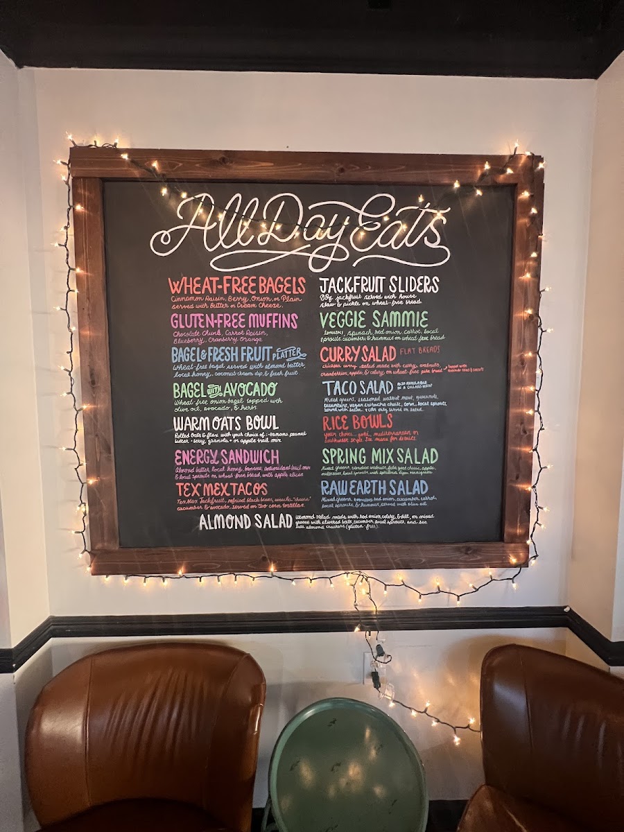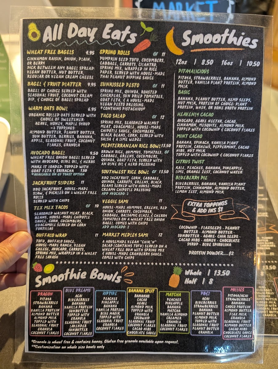 hummus, greens, red onion, carrot, cabbage, cherry tomatoes, balsamic glaze, on wheat free onion bagel. served with chips. *NEWLY UPDATED 2/1/25*